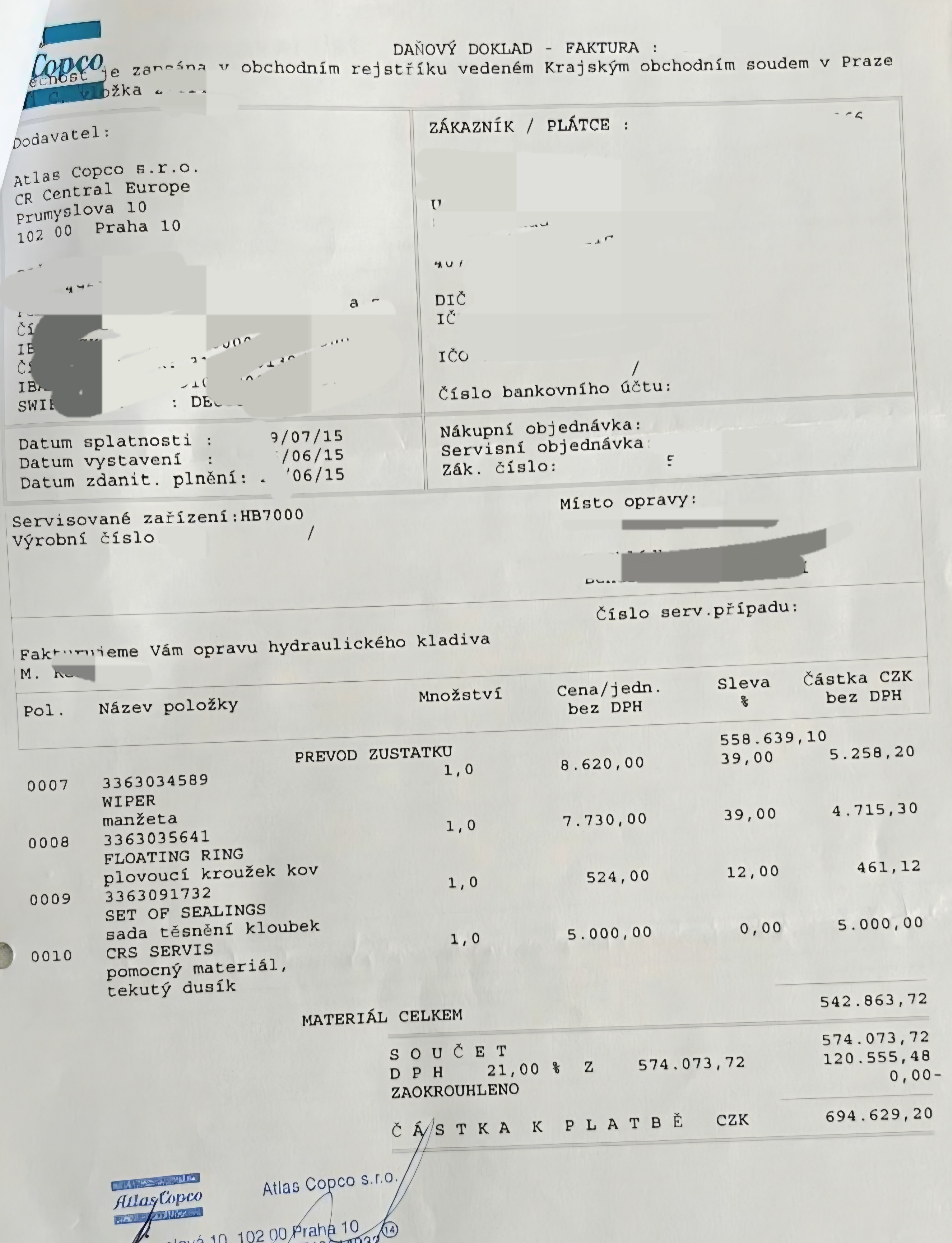6t hammer 210mm 180bar NACH REPARATUR AtlasCopco/Epiroc HB7000